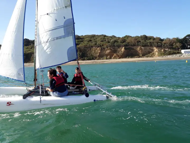 - Les élèves de CM1-CM2 et de CM2 de Mme Kerfant et M. Bernard découvrent quant à eux la voile à la base nautique. Les conditions météo étaient idéales pour cette première séance lundi.